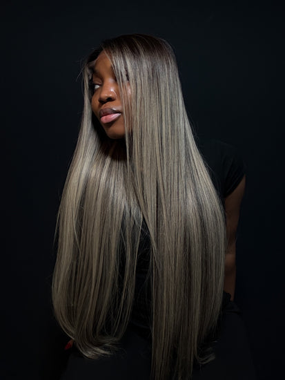 A cool-toned ash blonde melt with softly shadowed roots, hand-painted for seamless balance and blend.